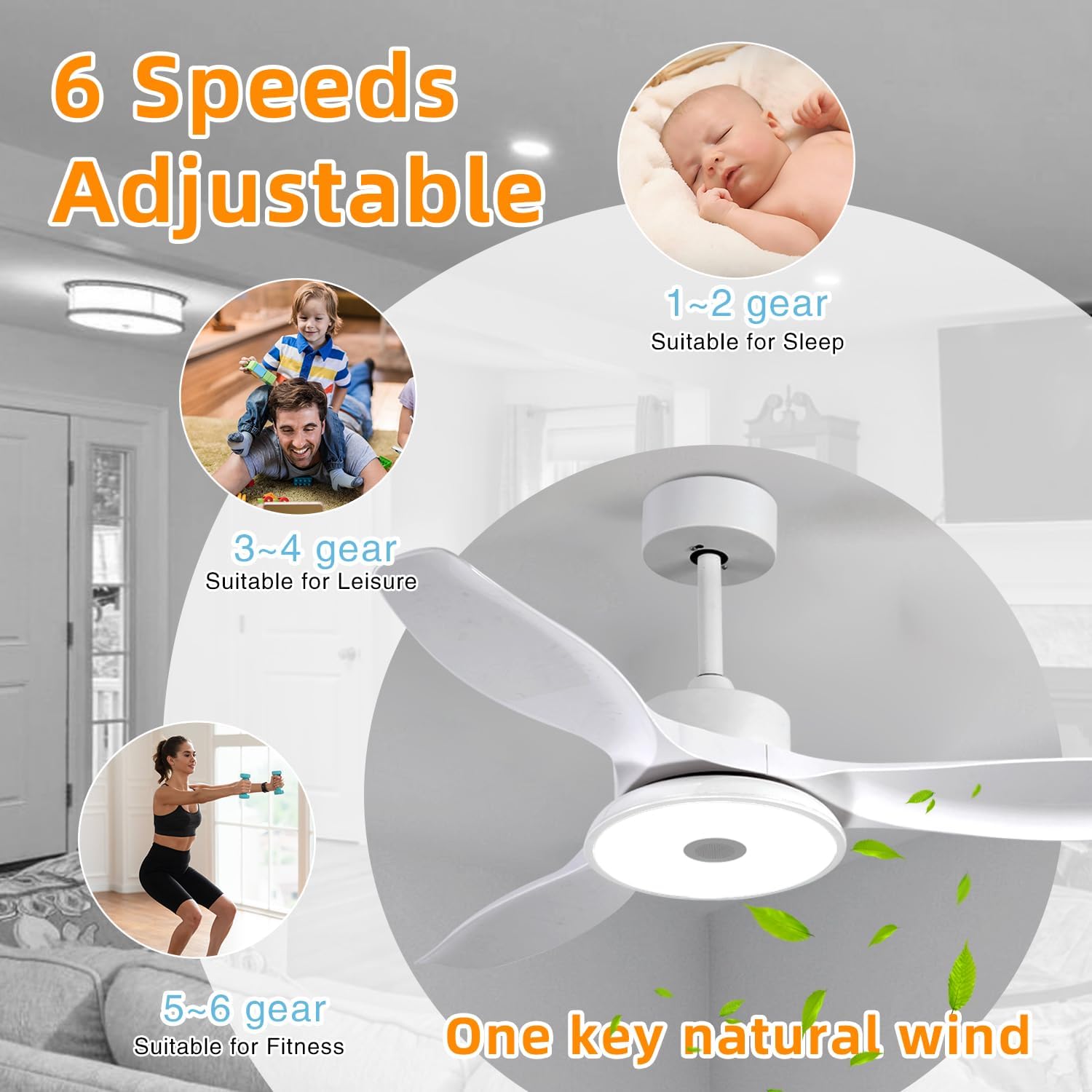 [6-Speed Reversible & Quiet DC Motor]The ceiling fan with light has 6 wind speeds available for you to adjust: comfortable, natural & cool wind. High-Quality Copper Motor silent and comfortable ceiling fan runs smoothly, with a strong airflow and no noise. The fan blades are rotating forward to provide you with strong cold air in hot summer, and in winter Ceiling fans reverse to provide fresh air throughout your home.